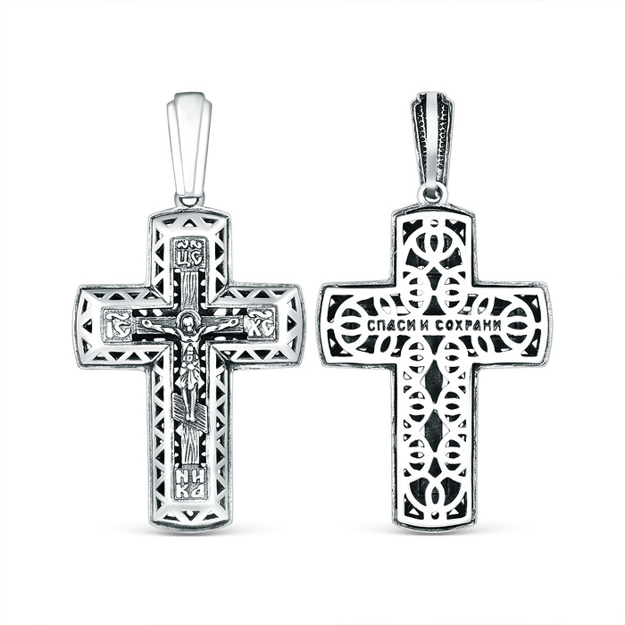 Крест православный из чернёного серебра - Спаси и сохрани 4,1 см ПР-036ч
