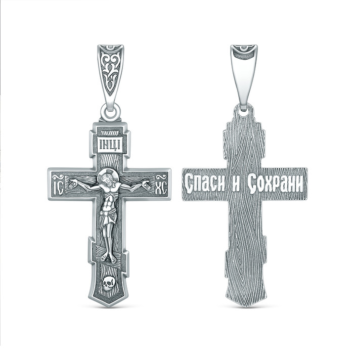 Совместные покупки Пермь Ювелирные украшения и бижутерия Подвески — Крест православный из родированного серебра - Спаси и сохрани 4,7 см 00-0051-3