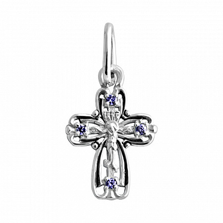 Крест с фианитом выборочно черненный серебро 925*