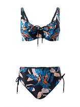 Раздельный купальник из легкой микрофибры. Материал в составе обладает высокой устойчивостью к воздействию ультрафиолетовых лучей и хлора, долгое время сохраняет цвет и быстро высыхает.