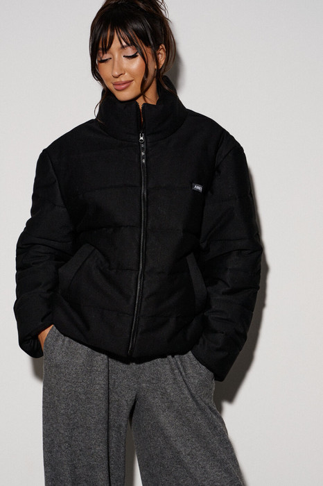 Куртка укороченная, утепленная, выполнена из трикотажного стегонного полотна. Характеристика: прямой крой, горловина стойка, брендированная подкладка на утеплении. Застежка центральная на молнии. Рукав спущен. По переду изделия функциональные карманы. Длина по спинке от края горловины 60см, длина рукава от края горловины 75см.