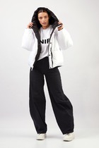 Куртка полуприлегающего силуэта на молнии, закрытой декоративной планкой на кнопках. Оригинальная отстрочка, декоративная пряжка, карманы на молнии. Капюшон отстегивается. Утеплитель холкон (см.описание), плотность 150. Длина изделия по спинке 66 см, длина рукава 64 см.