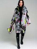 Куртка-тренчкот прямого силуэта с двубортной застежкой на петли-пуговицы, двухшовным рукавом и спущенной линией плеча, по низу рукавов паты с пряжкой. По полочке рукав втачной по спинке-реглан. Воротник пиджачного типа - отложной с лацканом. Полочка с карманом-листочкой. Спинка со средним швом и рельефом. По плечевому шву погон с застежкой на петли-пуговицы с щлеками. По низу притачная отстроченная планка со вставленной в нее резинкой. Куртка на подкладке.