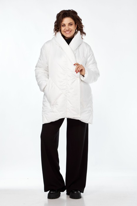 Куртка женская свободного кроя со смещенной застежкой на тесьму молнию и кнопки. Спинка со средним швом и отделочной деталью по низу переходящей на перед. По переду накладные карманы. Капюшон со средней частью и широкой отделочной деталью по борту и отлету капюшона. Рукав втачной одношовный с регулируемой длиной. Подходит под температурный режим от -10 до -20 градусов, синтепон 250 гр. Съемный пояс.