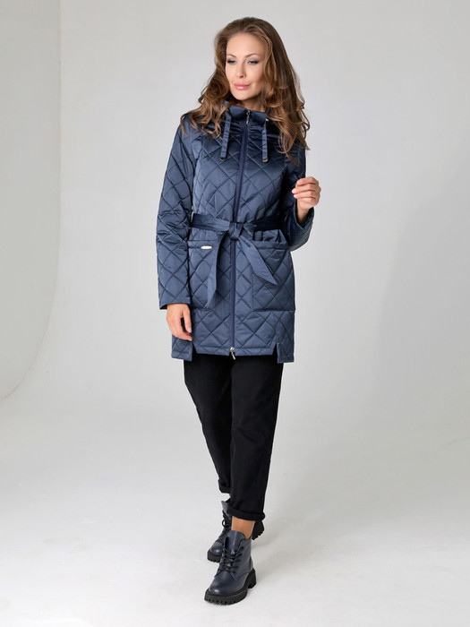 Демисезонная удлиненная куртка с втачными рукавами  подойдет для женщин и девушек любого возраста.  Застежка на двухзамковую молнию позволяет  легко расстегнуть куртку как сверху, так и снизу.   Воротник - стойка, переходящая в капюшон. Удобно расположенные накладные карманы имеют два функциональных входа: верхний и боковой, который фиксируется кнопкой. Есть внутренний кармашек на молнии. Линию талии, при желании, можно подчеркнуть поясом. Эта легкая стильная куртка с разноуровневой линией низа  выручит Вас на прогулке, на отдыхе и в городе.  Стеганная плащевая ткань имеет водоотталкивающую пропитку, которая выдержит небольшой дождь и легкий ветер. Хорошо зарекомендовавший себя утеплитель Холлофайбер плотностью 100 гр/м защитит от весенней прохлады. Подкладка в изделии - в мелкую полоску.  Фантазируйте с обувью и аксессуарами, и эта лаконичная по стилю  куртка станет незаменимой частью Вашего гардероба.