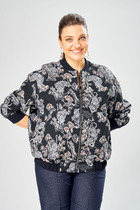 Укороченная куртка с капюшоном и застежкой на кнопки. Рукава куртки состоят из двух видов ткани. По переду куртка дополнена накладными карманами с клапаном , выходящими за пределы длины куртки.