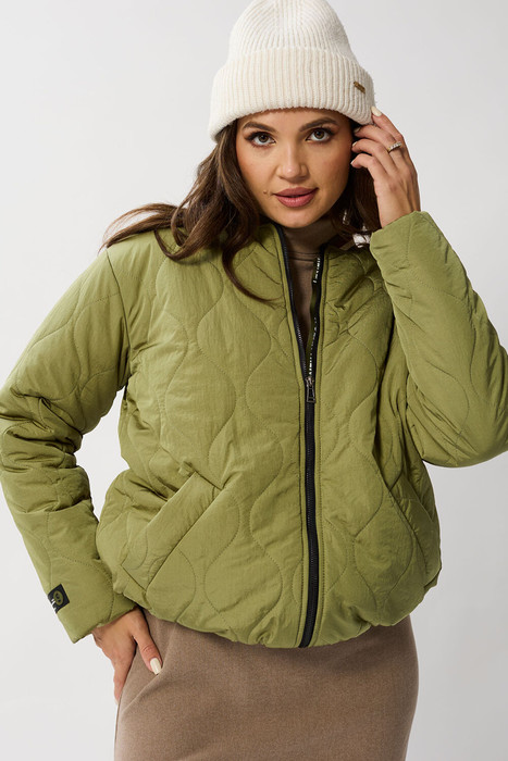 Куртка женская прямогосилуэта, с застежкой на молнию. Воротник притачная стойка из отделочной трикотажной планки. Плечо спущенное. Карманы прорезные с листочкой. Низ изделия на трикотажной планке. На рукаве настрочен декоративный элемент. Куртка утепленная на утепленной подкладке для прохладнйо погоды. Без дополнительного утепления (кофта под куртку) будет комфортно от 0 до -5 градусов. Если на улице более низкая температура, то необходимо дополнительно надевать теплую одежду.