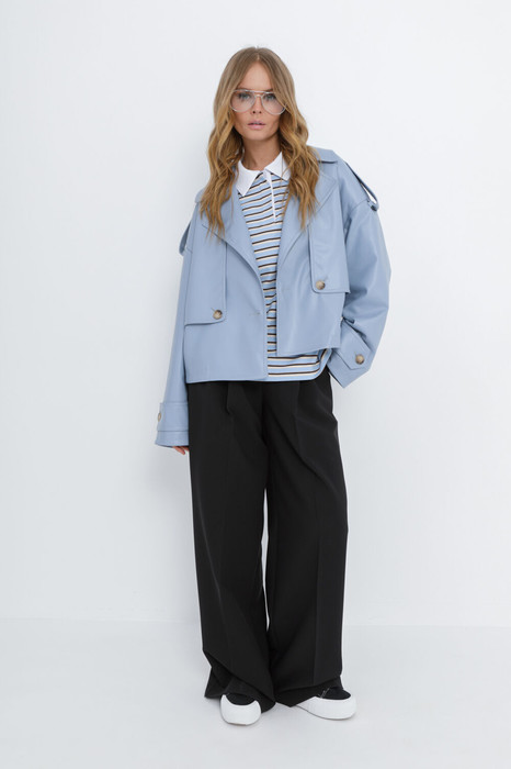Свободный укороченный тренчкот из экокожи.