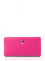 Кошелек женский выполнен из натуральной кожи. Детали: 2 отделения для купюр, 2 кармана для купюр, 4 отделений для визиток или карт, 2 отделения с прозрачным окошком для карты или проездного, 1 отделение на молнии для монет, 1 карман с оборотной стороны на молнии и 1 открытый карман. Фурнитура серебристого цвета. Упаковка: фирменная белая коробка.