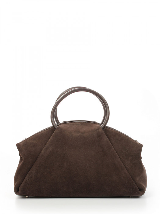 Сумка женская выполнена из натуральной замши. Детали: 2 ручки 30 см, 1 регулируема ручка от 110 см до 135 см. Сумка на ножках. Каркас сумки: полужесткий. Внутри изделия: 1 основное отделение на молнии и 2 дополнительных на магнитной кнопке, 1 карман на молнии, 1 открытый карман. Подкладка из хлопка. Металлическая брендированная фурнитура серебристого цвета. В комплекте фирменный пыльник для хранения сумки.