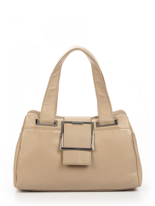 Сумка женская выполнена из натуральной кожи. Детали: 2 ручки 45 см, 1 регулируемый ремень от 115 см до 135 см. Сумка с ножками. Каркас сумки: мягкий. Внутри изделия: 2 отделения на молнии, 1 карман на молнии, 2 открытых кармана для мелочей.  Снаружи изделия: 1 карман на молнии сзади. Качественная подкладка из плотного хлопка. Металлическая брендированная фурнитура серебристого цвета. В комплекте фирменный пыльник для хранения сумки.