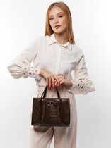 Особенность этой сумки — универсальность в способах ношения. Короткая ручка длиной 25 см идеально подойдёт для тех, кто предпочитает держать сумку в руке, а длинная регулируемая отстёгивающаяся ручка на плечо (от 110 до 135 см) позволит распределить нагрузку и освободить руки. Внутренняя организация пространства продумана до мелочей: под клапаном на магнитных кнопках расположено одно отделение на молнии, один открытый карман и один карман на молнии — всё, чтобы ваши вещи были в порядке и под рукой. Снаружи, на оборотной стороне, есть дополнительный карман на молнии — удобно для хранения ключей, проездного или других мелких предметов.
