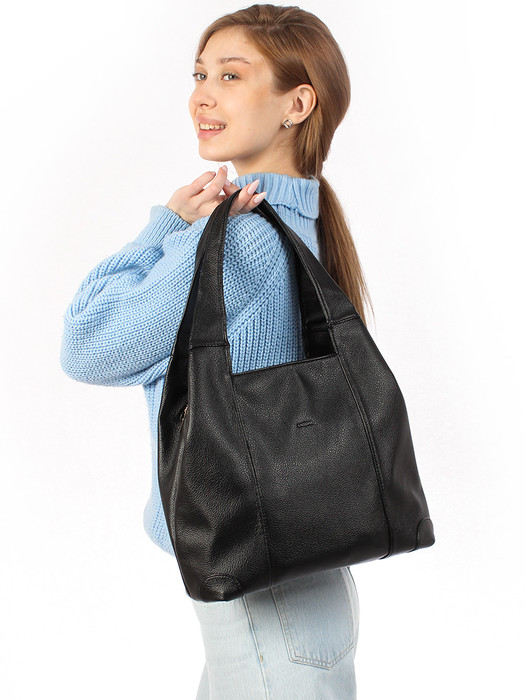 Сумка женская выполнена из экокожи. Детали: 2 ручки на плечо по 52 см. Внутри изделия: 2 отделения разделены перегородкой в виде кармана для документов на молнии, 1 открытый карман, 1 карман для мобильного телефона, 1 карман на молнии. Снаружи изделия: 1 карман на оборотной стороне на молнии. Брендированная подкладка из хлопка. Металлическая брендированная фурнитура серебристого цвета. В комплекте фирменный пыльник.