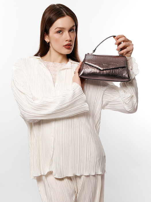 Сумка женская выполнена из экокожи. Детали: 1 короткая ручка 23 см., 1 длинный регулируемый ремешок на плечо 120 см. Внутри изделия: под клапаном на магнитной кнопке 3 отделения, 1 карман для документов на молнии. Брендированная подкладка из хлопка. Металлическая брендированная фурнитура серебристого цвета. В комплекте фирменный пыльник.