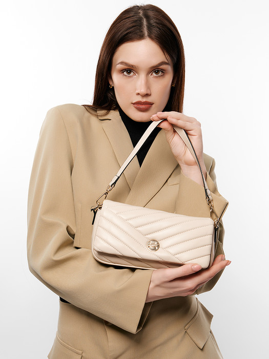 Сумка женская выполнена из экокожи. Детали: 1 съёмная короткая ручка 40см, 1 съёмная длинная регулируемая ручка 70-135см. Внутри изделия: под клапаном на магнитной кнопке 1 отделение, 1 карман на молнии. Брендированная подкладка из хлопка. Металлическая брендированная фурнитура золотистого цвета. В комплекте фирменный пыльник.