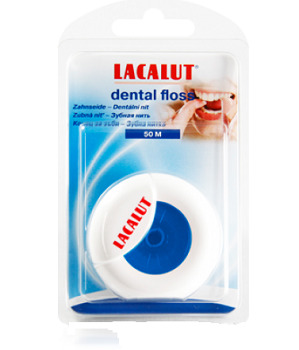Зубная нить Lacalut 50 м. Изготовлена из высококачественного вощеного нейлона. Эффективно очищает межзубные пространства. Обладает стойким мятным вкусом, приятно освежая полость рта