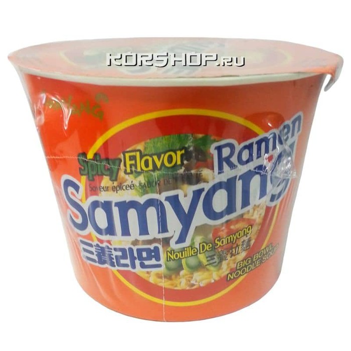 Лапша быстрого приготовления Самянг  (Samyang) – это высококачественный корейский продукт, который всегда выручит в условиях нехватки времени и станет хорошим офисным обедом. Длинная пшеничная лапша отличается хорошей упругостью и отменным вкусом, а ароматные приправы приятно будоражат аппетит.   Для Samyang Cup Ramen, в отличие от лапши в пакетиках, не нужна отдельная посуда, и её очень удобно заваривать. Достаточно лишь залить кипятком лапшу и содержимое пакетиков с приправами и подождать несколько минут.   Купить корейскую лапшу быстрого приготовления Samyang и другие товары из Азии по справедливым ценам Вы можете в интернет-магазине KorShop.ru . Вам не придётся тратить своё время и силы: мы с удовольствием доставим заказ на дом (для Москвы и Подмосковья). В другие города возможна отправка почтой.   Состав: мука пшеничная, крахмал, пальмовое масло, крахмал картофельный, соль, овощи сушенные, глюкоза, сахар, соевый соус, сушеные грибы, усилитель вкуса говядины.   Пищевая и энергетическая ценность на 115 г: углеводы – 44 г, жиры – 9 г, белки – 6 г, 280 ккал.   Срок годности 1 год. Хранить в тёмном и прохладном месте.    Тэги: сублимированная лапша, корейские продукты, Samyang, лапша быстрого приготовления, корейская лапша, Самянг, лапша с говядиной, лапша из Кореи