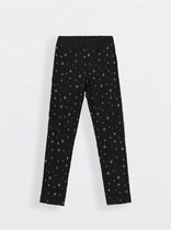 Легинсы прилегающего силуэта с цельнокроенным поясом на резиновой тесьме. Вдоль боковых линий настрочена декоративная тесьма. В качестве дополнительного декора использованы брендовые этикетки и флажки