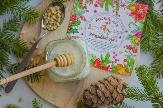 Состав: взбитый липовый мед, ядро кедрового ореха очищенное.