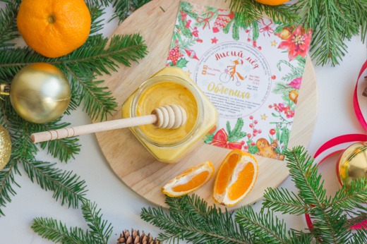 Состав: взбитый липовый мёд, сок облепихи, ягоды спелой облепихи.