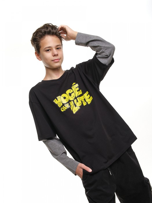 Mini Maxi Лонгслив с принтом (152-164см) 22-0229-2(4) черный/серый