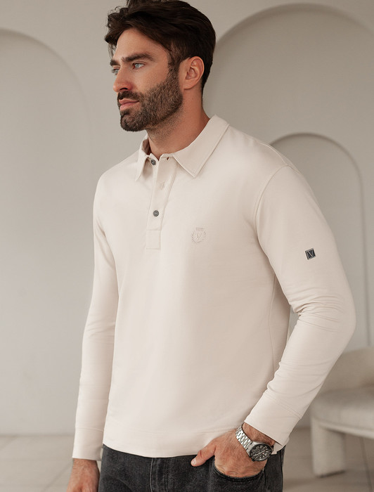 Лонгслив с воротником поло на пуговицах из премиального хлопка с эластаном