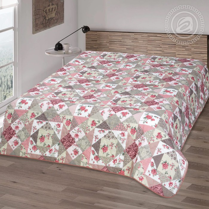 Покрывала Лоскутная мозаика розовый стеганные бязь