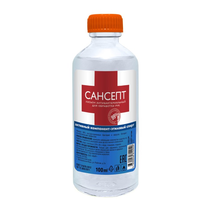 Совместные покупки Пермь Косметика и парфюмерия Прочее — Лосьон антибактериальный для обработки рук Сансепт, 100мл стекло
