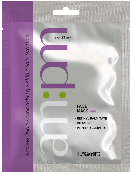 Антивозрастная тканевая маска с ретинилпальмитатом, комплексом пептидов, витамином Е и пантенолом — эффективное средство для ухода за кожей, предназначенное для борьбы с признаками старения. Маска глубоко питает и увлажняет, улучшая текстуру и повышая упругость кожи. Ретинилпальмитат (форма витамина А) стимулирует обновление клеток, выработку коллагена и уменьшает видимость морщин, придавая коже более свежий и молодой вид. Комплекс пептидов улучшает тонус кожи, способствует её регенерации и снижает проявления возрастных изменений. Маска подходит для всех типов кожи, включая чувствительную.