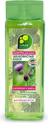 Репейное масло и экстракт шишек хмеля осуществляет балансирующий уход за жирными волосами.