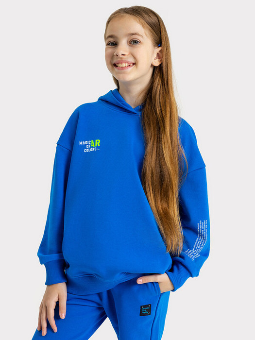 Стильное худи силуэта оверсайз для девочек, созданное из трикотажного футера с теплым подчесом. Округлая горловина, просторный уютный капюшон, длинные просторные рукава на манжетах – ничего лишнего. Дополнительную свободу дарит спущенная линия плеча. Отличный вариант для вашей девочки!