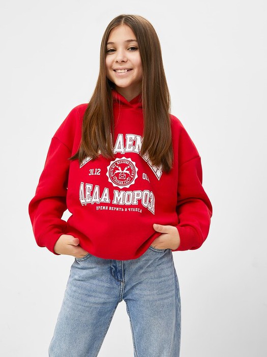 Стильное худи силуэта оверсайз для девочек, созданное из трикотажного футера с теплым подчесом. Округлая горловина, просторный уютный капюшон, длинные просторные рукава на манжетах – ничего лишнего. Дополнительную свободу дарит спущенная линия плеча. Отличный вариант для вашей девочки!