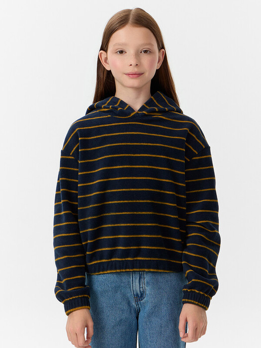Укороченный анорак из флиса. Силуэт свободный, пройма спущена. Рукава длинные, втачные. Горловина круглой формы, втачан капюшон. По низу изделия и низу рукавов застрочена эластичная тесьма.