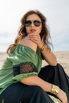 Элегантная блуза на узких бретелях – идеальный выбор для создания стильного и изысканного образа. Прямой, свободный силуэт и V-образная горловина придают модели утончённость и шарм. Перед и спинка на подкладке из основного материала обеспечивают комфорт и дополнительную плотность, а нижние срезы аккуратно обработаны швом вподгибку, что придаёт изделию завершённый вид. Блуза выполнена из прочного и приятного к телу струящегося материала, который красиво подчеркивает изящные линии фигуры. Этот материал не только отлично смотрится, но и дарит ощущение нежности и лёгкости при каждом движении. Такая блуза станет отличным дополнением вашего гардероба, подходящим как для повседневных образов, так и для особых случаев.