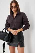 Блузка женская прямого силуэта из сатиновой ткани. Горловина круглой формы, в горловину втачан стояче-отложной воротник. Центральная застежка на пуговицы.