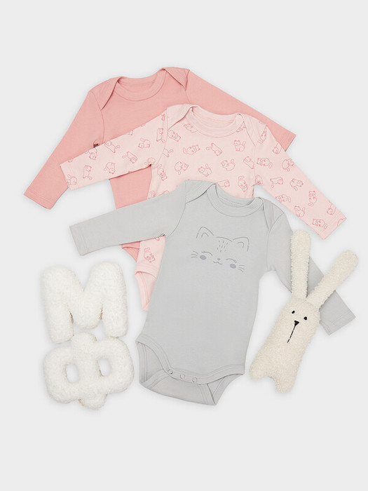 Боди выполнено из интерлока. Спинка и перед цельнокроенные. Спинка с переходящей кокеткой и цельнокроенной ластовицей. Горловина круглая, окантована бейкой из основног полотна. Припуски верхних и нижних срезов переда и спинки окантованы бейкой из основго полотна. Рукава длинные, втачные, одношовные.