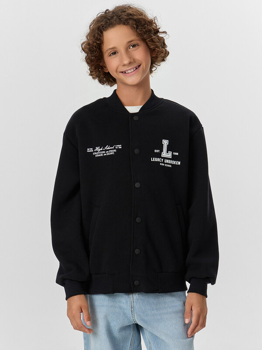 Бомбер свободного силуэта — это модная и удобная вещь, созданная для активных мальчиков. Модель выполнена из футера с мягким подчесом, который дарит тепло и приятные ощущения при носке. Круглый вырез горловины дополнен воротником-стойкой из рибаны, придающим образу аккуратность и защищающим от ветра. Спущенное плечо и углубленная пройма обеспечивают свободу движений, а длинные рукава с манжетами из рибаны надежно фиксируются, не сдавливая руки. Застежка на кнопки делает бомбер удобным и практичным, а боковые карманы добавляют функциональности. Пояс из рибаны по низу изделия завершает силуэт и обеспечивает комфортную посадку. Этот бомбер — отличный выбор для прогулок, школы и активного отдыха, сочетающий в себе стиль, тепло и удобство.