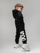 Брюки-джоггеры для мальчиков. Пояс отрезной с втачной эластичной тесьмой, внутри шнур. Пояс прострочен двумя отделочными строчками. По переду обработаны карманы с отрезным бочком. Низ брюк застрочен с эластичной тесьмой на двухигольной плоскошовной машине.
