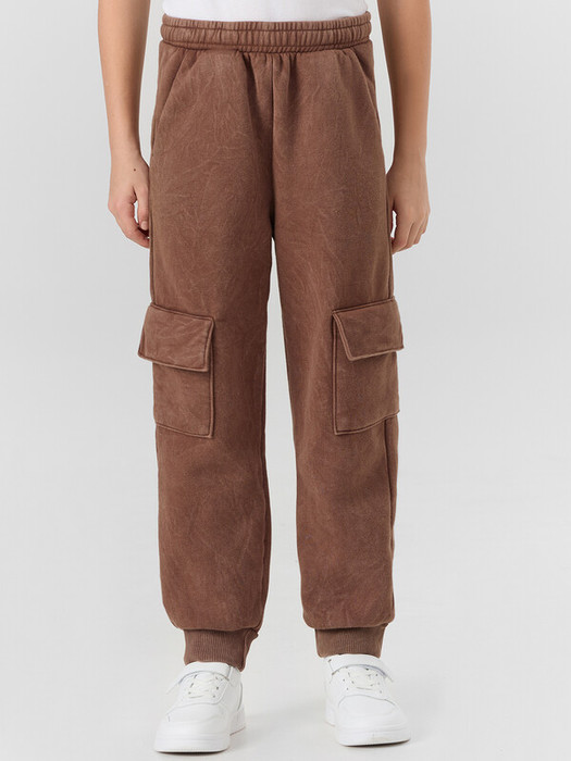 Брюки джогеры. Посадка средняя. На передних деталях карманы "хулиганы". Подкладка карманов из основного полотна. Пояс отрезной с эластичной тесьмой 40RV, отстрочен. Внутри в поясе пробиты петли и протянут шнур 10-PXC2. На боковых деталях накладные карманы с клапанами. Низ брюк обработан рибаной.
