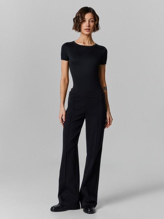 Брюки прямого силуэта. Перед и спинка цельнокроеные. По переду отстрочки, сзади вытачки. Пояс отрезной с резиной 40RV.