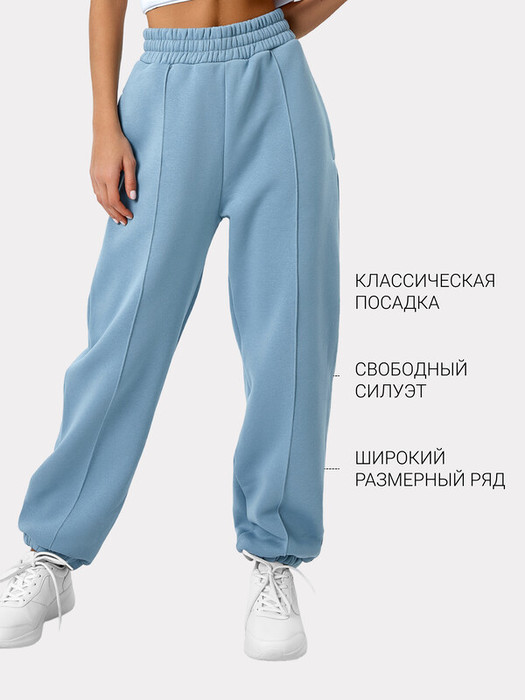 Универсальные джоггеры из футера с теплым подчесом. В составе полотна преобладает натуральный хлопок, прочности добавляет полиэстер. Брюки имеют свободный силуэт, что дарит полный комфорт во время любых активностей – спорта, прогулок, путешествий. Удобные боковые карманы, высокая линия талии, эластичный пояс, внутренний шнурок-завязка. Изюминка модели - вертикальные рельефы на брючинах. Уютно, удобно, стильно!