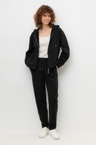 Брюки изготовлены из трикотажного полотна футер. Брюки прямые. свободные. Пояс цельнокроеный с эластичной тесьмой внутри. В боковых швах расположены карманы, подкладка из основного полотна. Низ брюк обработан швом в подгибку с эластичной тесьмой внутри.