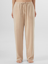 Брюки свободного силуэта со средней посадкой в пол. Пояс цельнокроенный с эластичной  тесьмой внутри (20мм 20RV). Карманы в боковых швах, внутри карманов кулирное полотно.