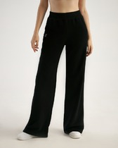 Брюки женские прямого силуэта из ткани. На деталях переда карманы с отрезным бочком. Пояс отрезной состоит из двух частей, задняя часть пояса присборена на резинку. Посадка средняя.