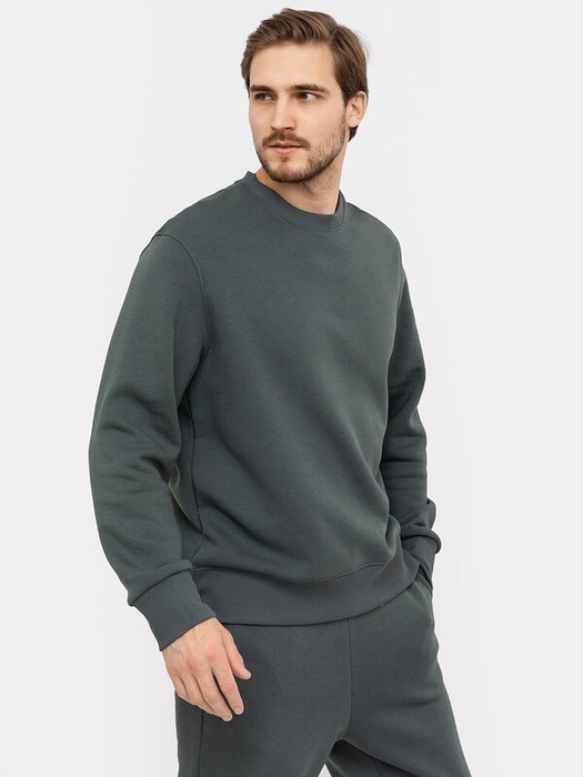 Джемпер из трикотажного футера с теплым подчесом. Длина до середины бедер, силуэт прямой. Линия плеча спущена. Рукава длинные, с притачными манжетами. Горловина круглой формы. Отличный выриант для стильных городских образов!