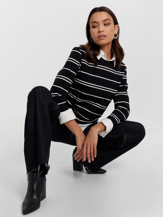 Совместные покупки Пермь Женская одежда Джемперы, свитеры, водолазки — Mark Formelle ДЖЕМПЕР ЖЕНСКИЙ 122867 122867 белая полоска на черном1 1050