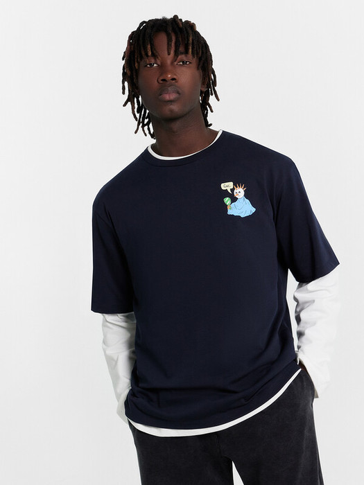 Футболка свободного силуэта из кулирного полотна. Горловина круглой формы. Спущенная линия плеча и углубленная пройма гарантируют свободу движений. Длина рукава чуть выше локтя. Рекомендуем!