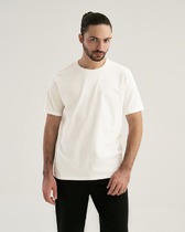 Нижние срезы футболки и рукавов обработаны швом в подгибку на
