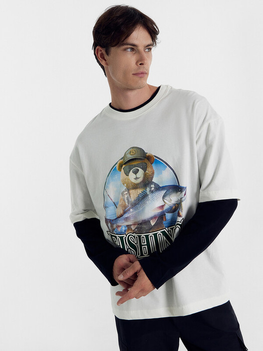 Футболка прямая свободная. Горловина округлой формы обработана обтачкой из рибаны. Шов втачивания обтачки по спинке закрыт бейкой из основного полотна. Линия плеча слегка спущена. Рукава втачные, корткие. Нижние срезы футболки и рукавов обработаны швом вподгибку на 2х шовной плоскошовной машине.
