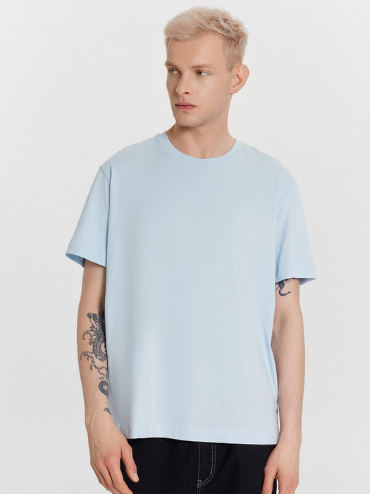 Нижние срезы футболки и рукавов обработаны швом вподгибку.